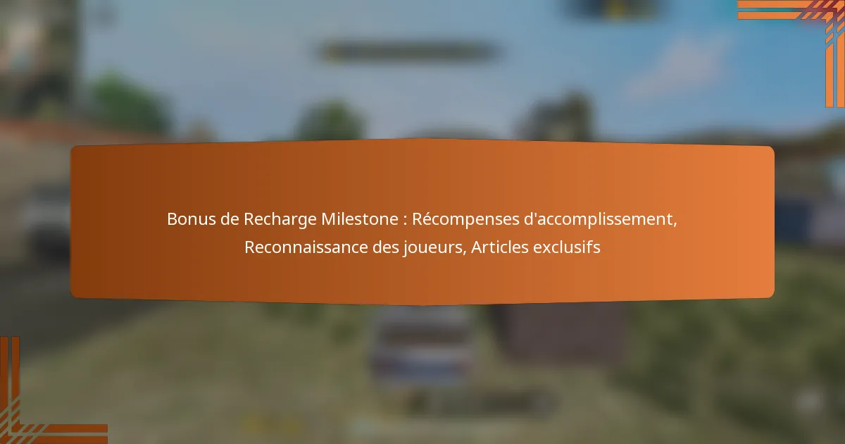 Bonus de Recharge Milestone : Récompenses d’accomplissement, Reconnaissance des joueurs, Articles exclusifs